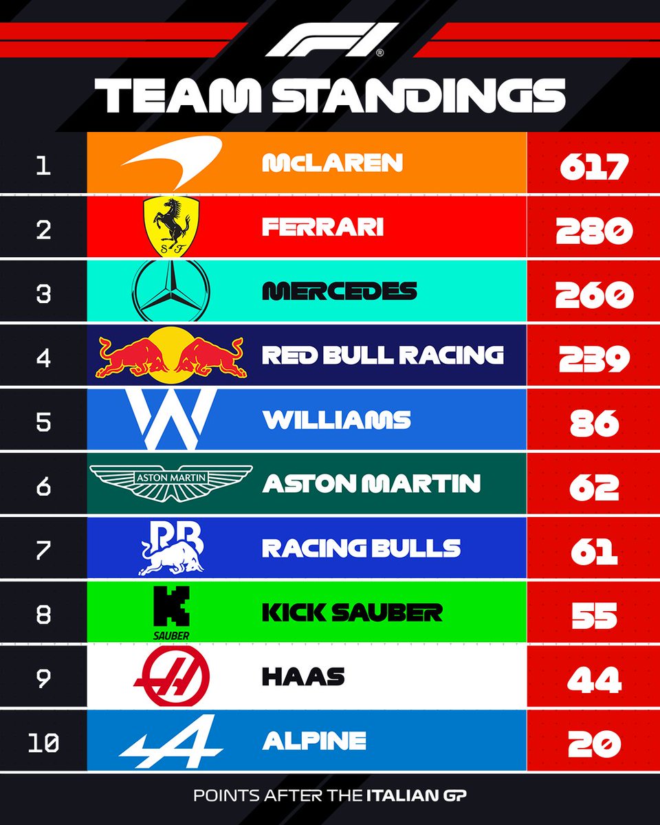 Verstappen retomó la cima en Italia aunque McLaren sigue liderando los dos campeonatos