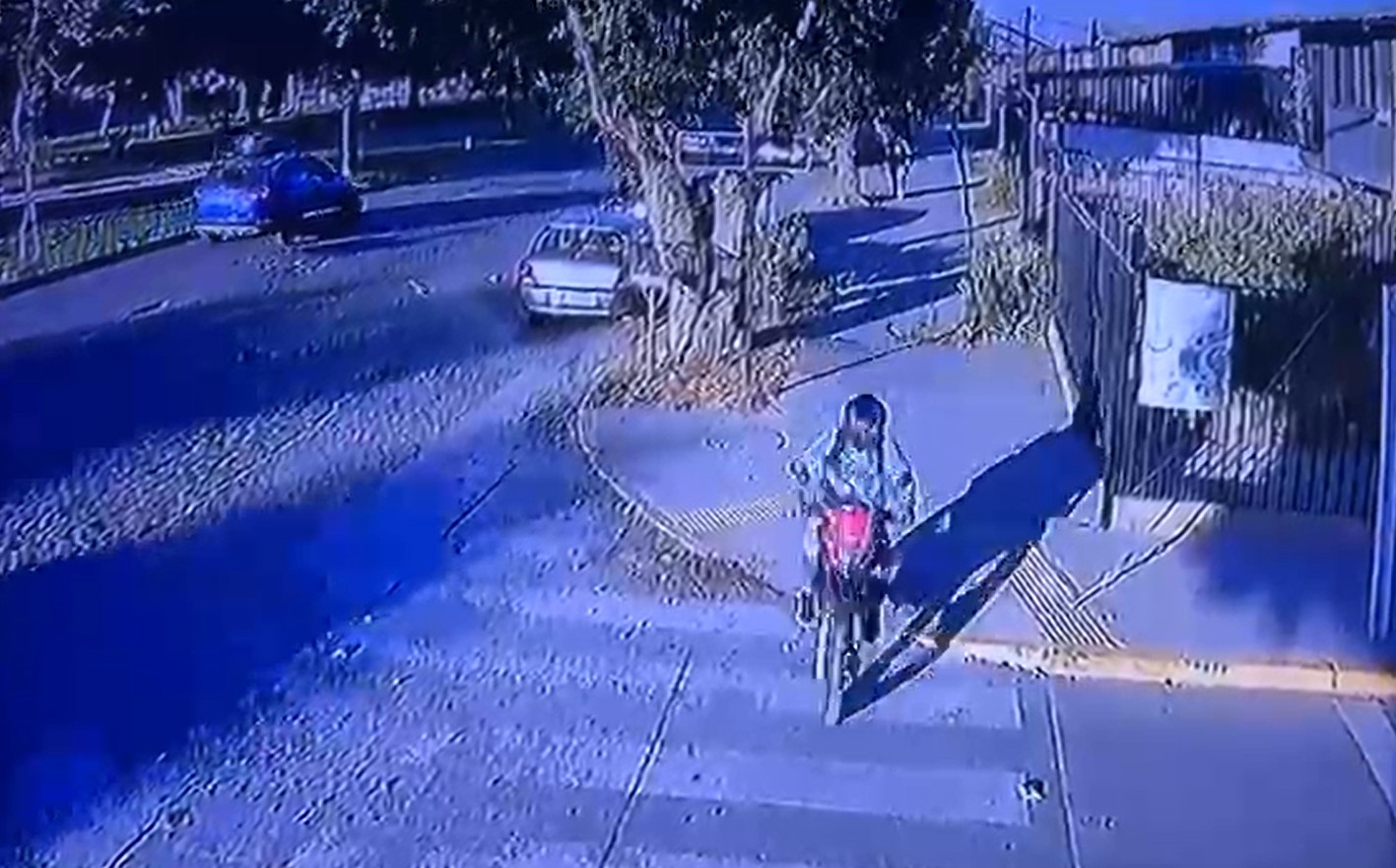 En las imágenes se observa al individuo movilizándose a alta velocidad en una motocicleta roja, utilizando casco negro y polerón gris claro o celeste, identico al registro compartido previamente por vecinos del barrio.